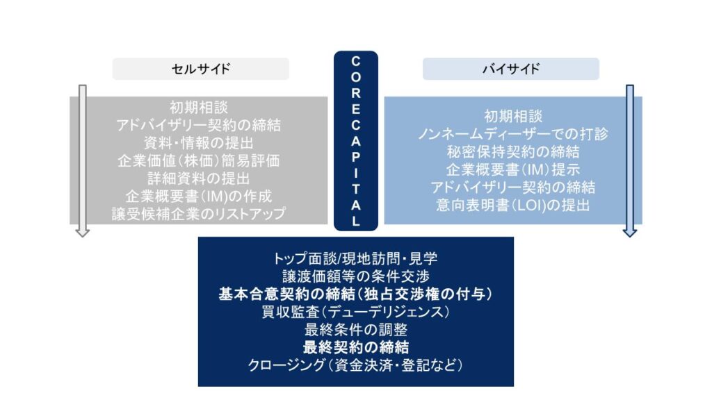 譲渡側、譲受側双方オーナー様と向き合い、FA・仲介業務を提供し、「M&Aしてよかった。」そういっていただけるような成長戦略支援を行います